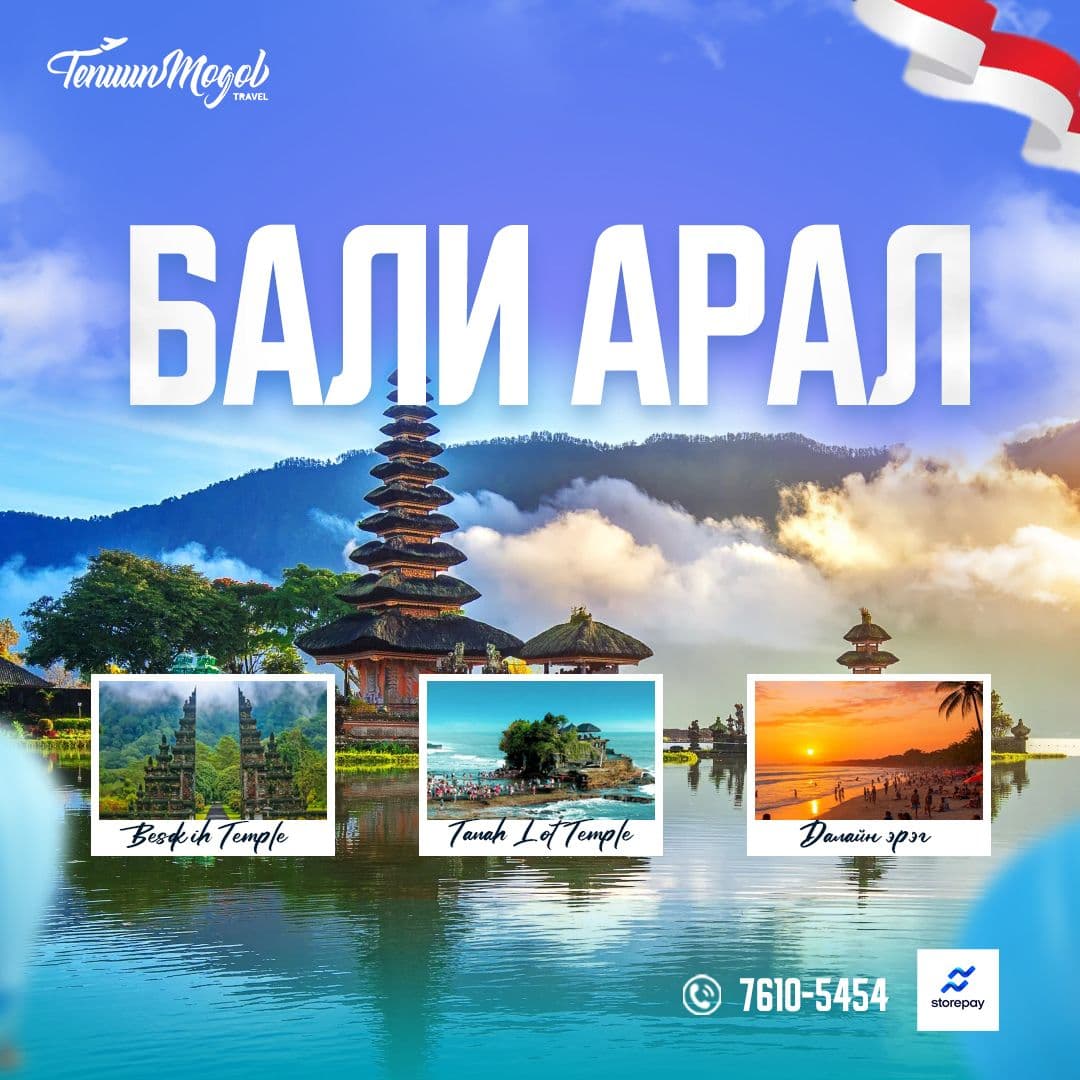 Бали арал нь ногоон ширэнгэн ой, цэнхэр далай, эртний сүм хийдүүд хосолсон жинхэнэ диваажин юм. Энд та адал явдал болон тайван амралтыг нэг дороос мэдэрч, нутгийн соёл, үндэсний хоолоор аяллаа улам мартагдашгүй болгоорой.